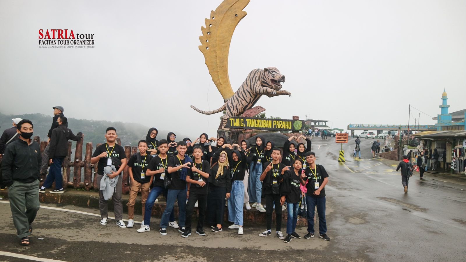 Setelah semua siswa selesai makan pagi, akhirnya kami melanjutkan perjalanan menuju destinasi pertama, yakni Tangkuban Perahu. Pada hari itu, semua siswa menggunakan kaos kelas masing -masing. Setiap kelas memiliki identitas yang berbeda-beda yang pastinya mencerminkan kelas masing-masing.